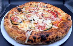 Pane Pizza, Mortadella, Noci di burratina al Pistacchio, Pomodoro Scottato in Piastra, Granella di Pistacchio